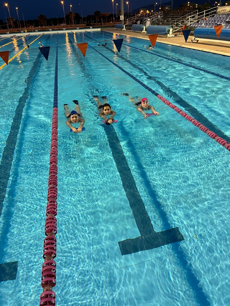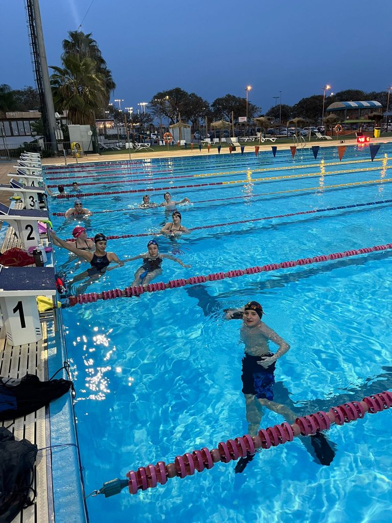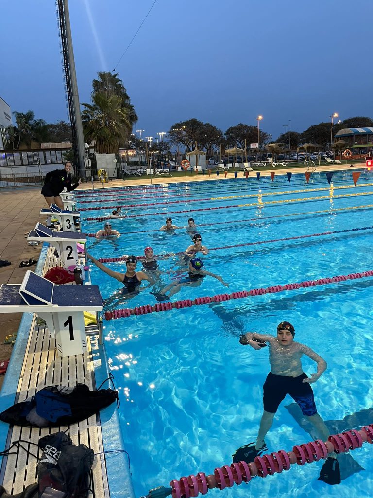 Ein kleiner Überblick über unsere Leistungen: Wir hatten insgesamt zwölf Wassereinheiten von jeweils zwei Stunden. Nach jedem Morgentraining folgte eine Athletikeinheit, dementsprechend also sechs Einheiten an Land. Wir sind insgesamt 50 Kilometer geschwommen. Unsere Kinder, die zwischen 9 und 17 Jahre alt sind, haben das hervorragend gemeistert. Besonders hervorzuheben sind Nell, Lorena, Leonie, Dina und Edem, die es geschafft haben, jede Einheit vollständig mitzumachen. Bei allen anderen kam gelegentlich eine leichte Krankheit dazwischen, die sie vom Training abhielt. Nichtsdestotrotz sind wir stolz auf jeden, der am Trainingslager teilgenommen hat, und ziehen den Hut vor dieser meisterlichen Leistung.